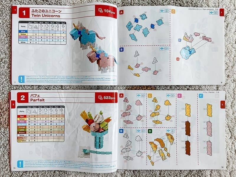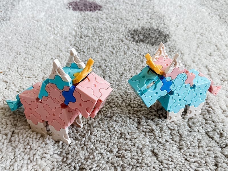 Šiandien mes turime tris „LaQ“ rinkinius: pirmąjį dvimatį universalia tema, mini trimatį vienaragių tema ir didelį trimatį desertų tema. Su dukra dėlioti pradėjome 4,5 metų ir nors ji iki tol nebuvo didelė konstruktorių gerbėja šis jai labai patiko. Ir tiesa sakant nekėlė jokių dėliojimo iššūkių – visi paveikslėliai buvo savarankiškai sudėti.