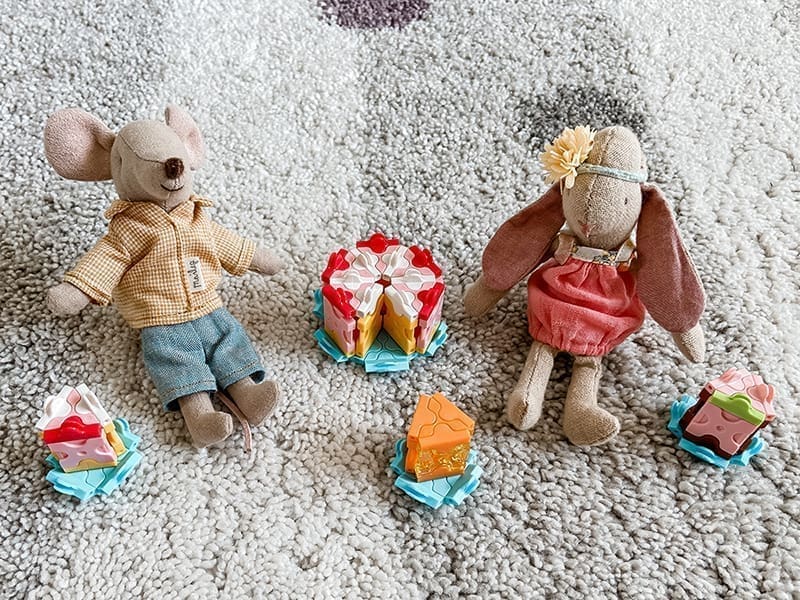 Rinkdama trečiąjį konstruktorių atsižvelgiau į kitus mūsų žaislus bei dukros pomėgius, nes mano tikslas buvo panaudoti „LaQ“ ne tik lavinimui, bet ir vaidmenų žaidimams. Tam labai tiko desertų ir arbatėlės tema sukurtas rinkinys, tad vaikai gali tiek konstruoti, tiek vėliau panaudoti mini pyragėlį žaisdami su pelytėmis arba didelį tortą pliušinių meškučių gimtadienyje.