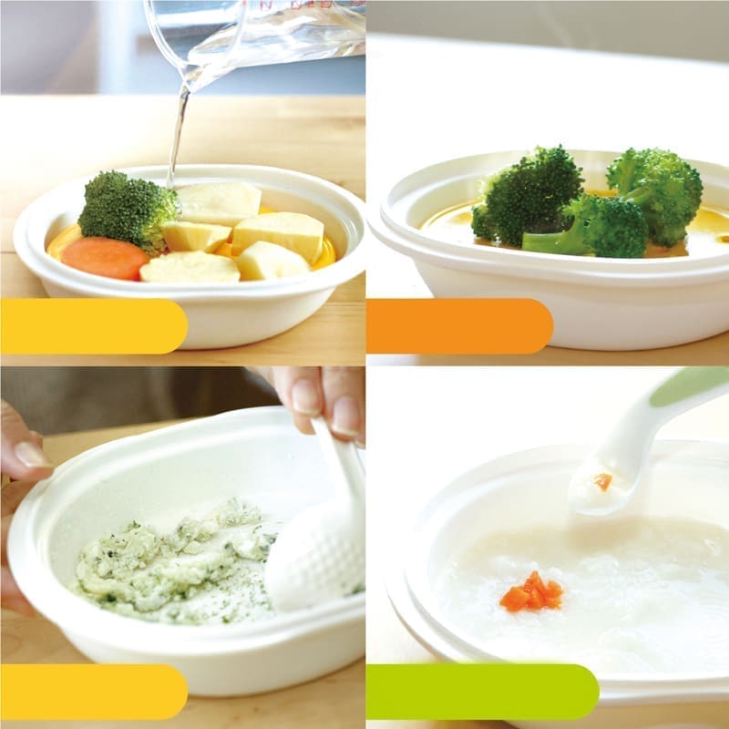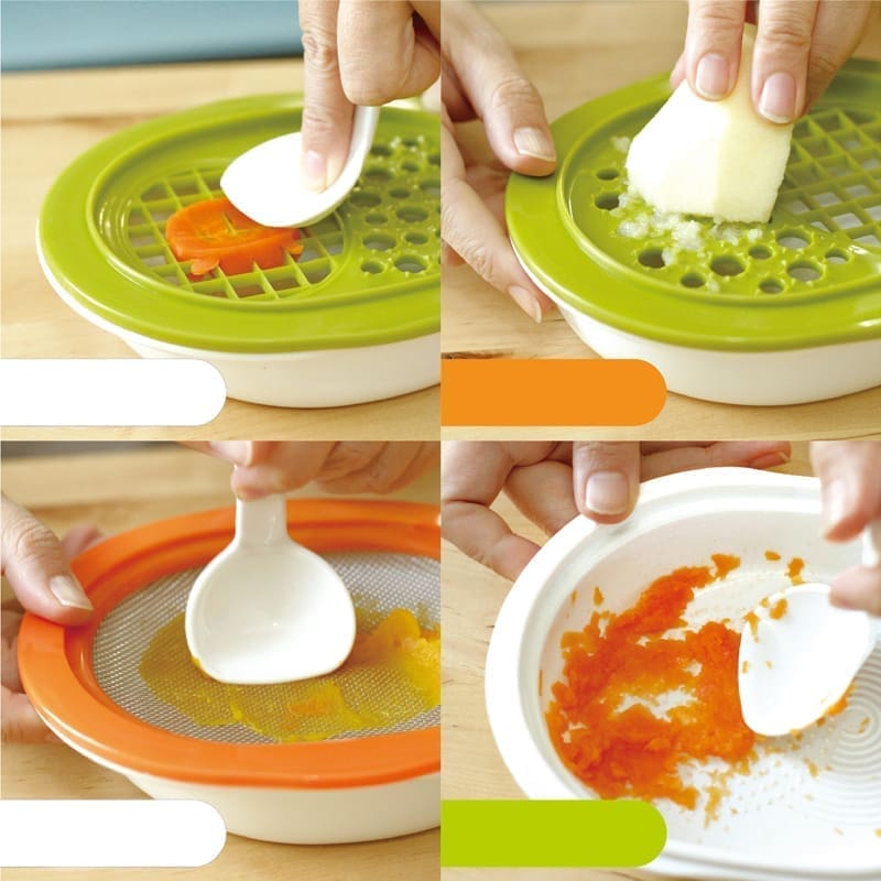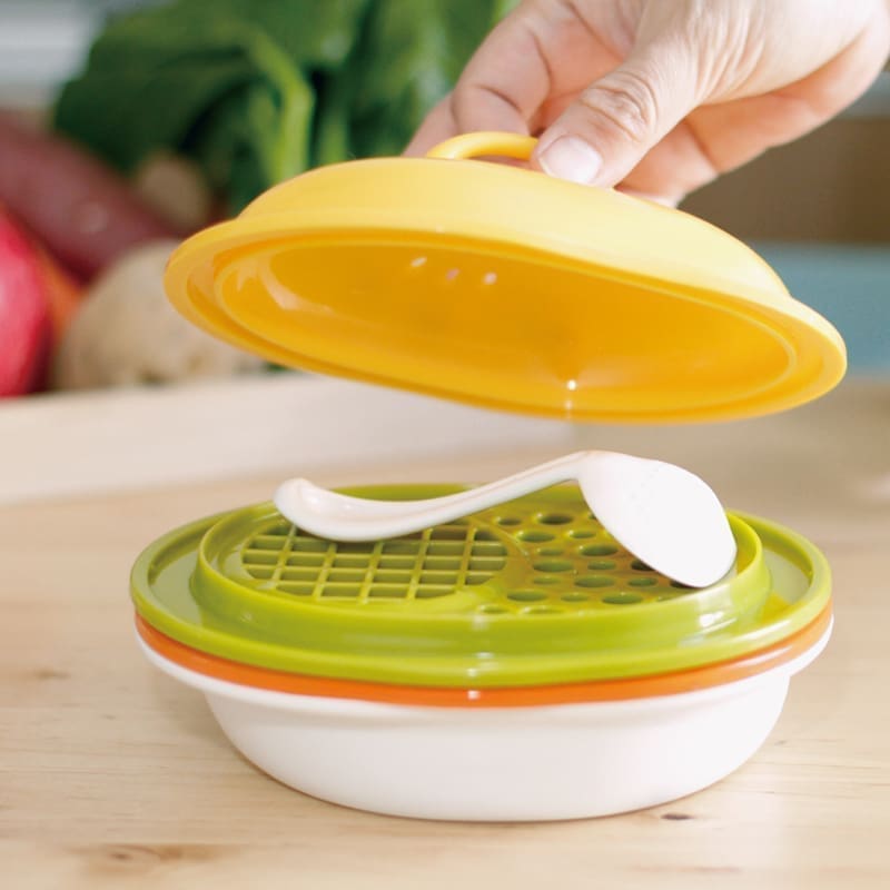 SUDĖTIS: dangtis / šaukštas maišymui / pjaustymas-trynimo grotelės / garų lėkštė / maitinimo dubuo: polipropilenas; sietelis: polipropilenas/nerūdijantis plienas.