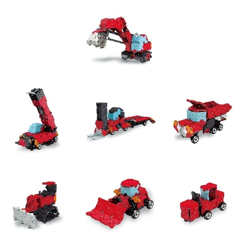 | Modeliai, kuriuos sukonstruosite | Ekskavatorius, sunkvežimis, buldozeris, krautuvas, kranas ir kt. |