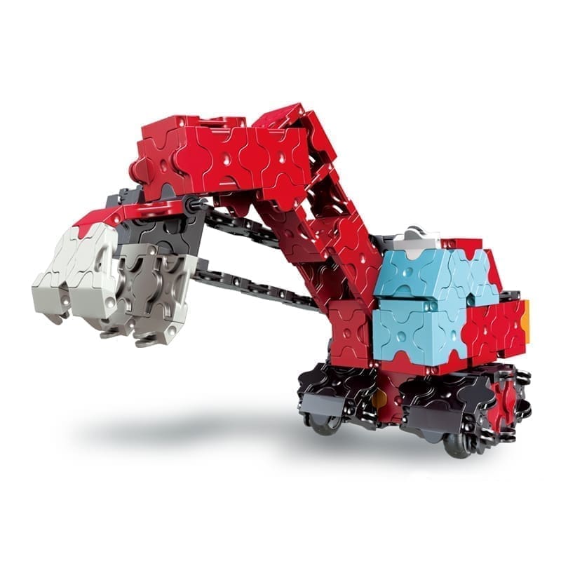 Rinkinyje Power Shovel esantis galingasis ekskavatorius gali judėti ne tik aukštyn ir žemyn, bet ir suktis apie savo ašį 360 ° kampu.Taip pat galite sukonstruoti kraną, kuris juda ir savo kaušu gali perkelti statyboms reikalingus riedulius bei kitus sunkius daiktus. Sunkvežimis su priekaba lengvai išvers bet ką, kad ir kas joje būtų, buldozeris išstumdys viską, kas pasitaikys kelyje, o kur dar daug kitokių schemoje esančių modeliukų! Be to, rinkinio detalių užteks ir saviems modeliams kurti bei perkurti.