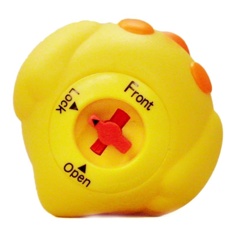 Pasukite apatinį fiksatorių ant dangtelio (parodyta paveikslėlyje), kad išvalyti ir išsausinti žaisliuko vidų.